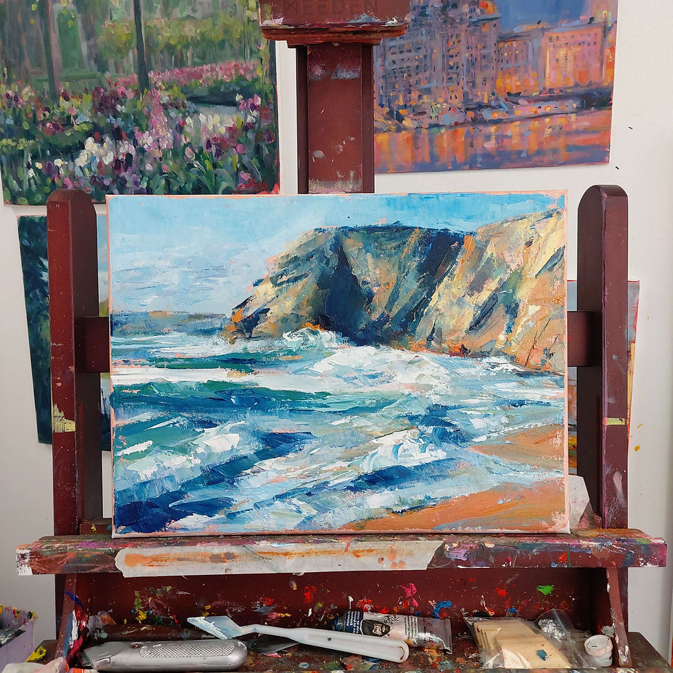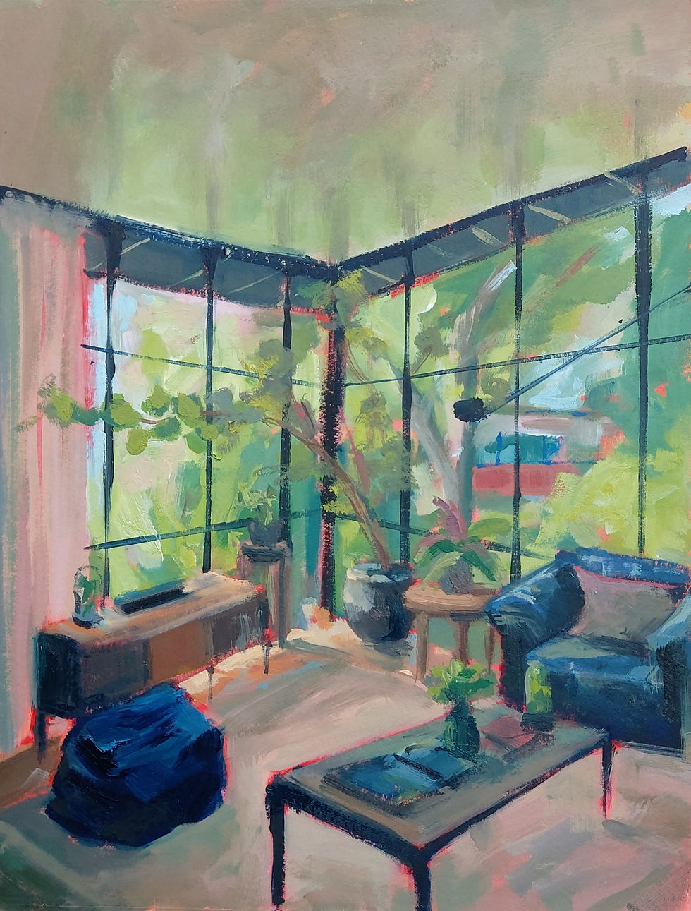My Landscapes envisage a space that is warm and vivid. Every space has its unique beauty, whether it's in nature, or light's reflection onto concrete buildings. I am fascinated by light and how it changes a space's intrigue.